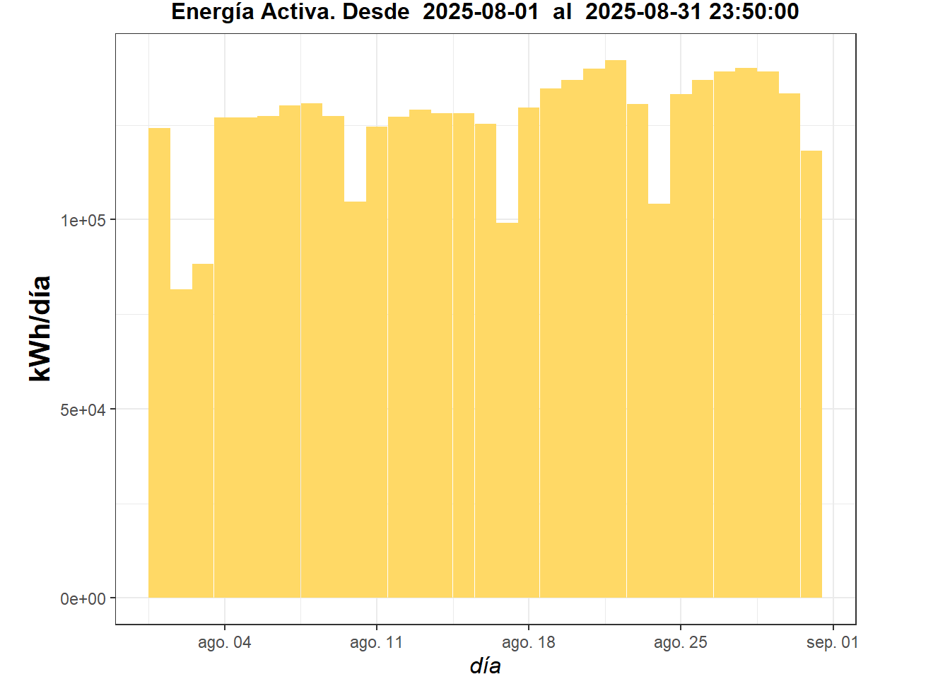 El consumo promedio diario de energía fue de 125,429.74 kWh, en línea con los registros de meses previos (124,023.94 kWh y 130,688.62 kWh).